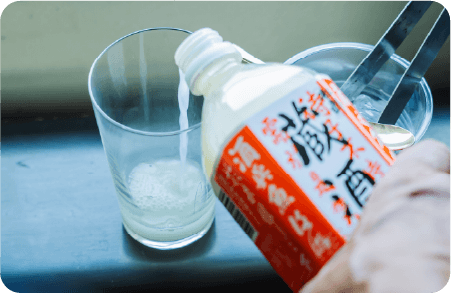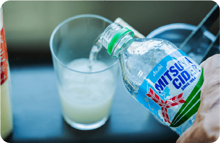 蔵酒をよく振って、蔵酒と三ツ矢サイダーを1対1の割合で